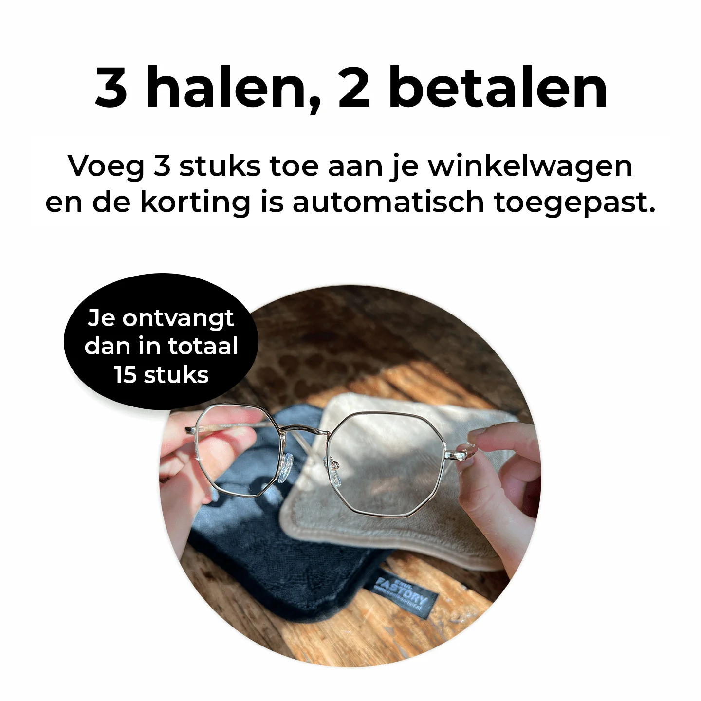 Kies uit de kleuren antraciet of beige, en ontvang een set van 5 brildoekjes. Eén voor thuis, één voor onderweg, en nog een paar extra voor je auto of kantoor. Altijd een doekje binnen handbereik!